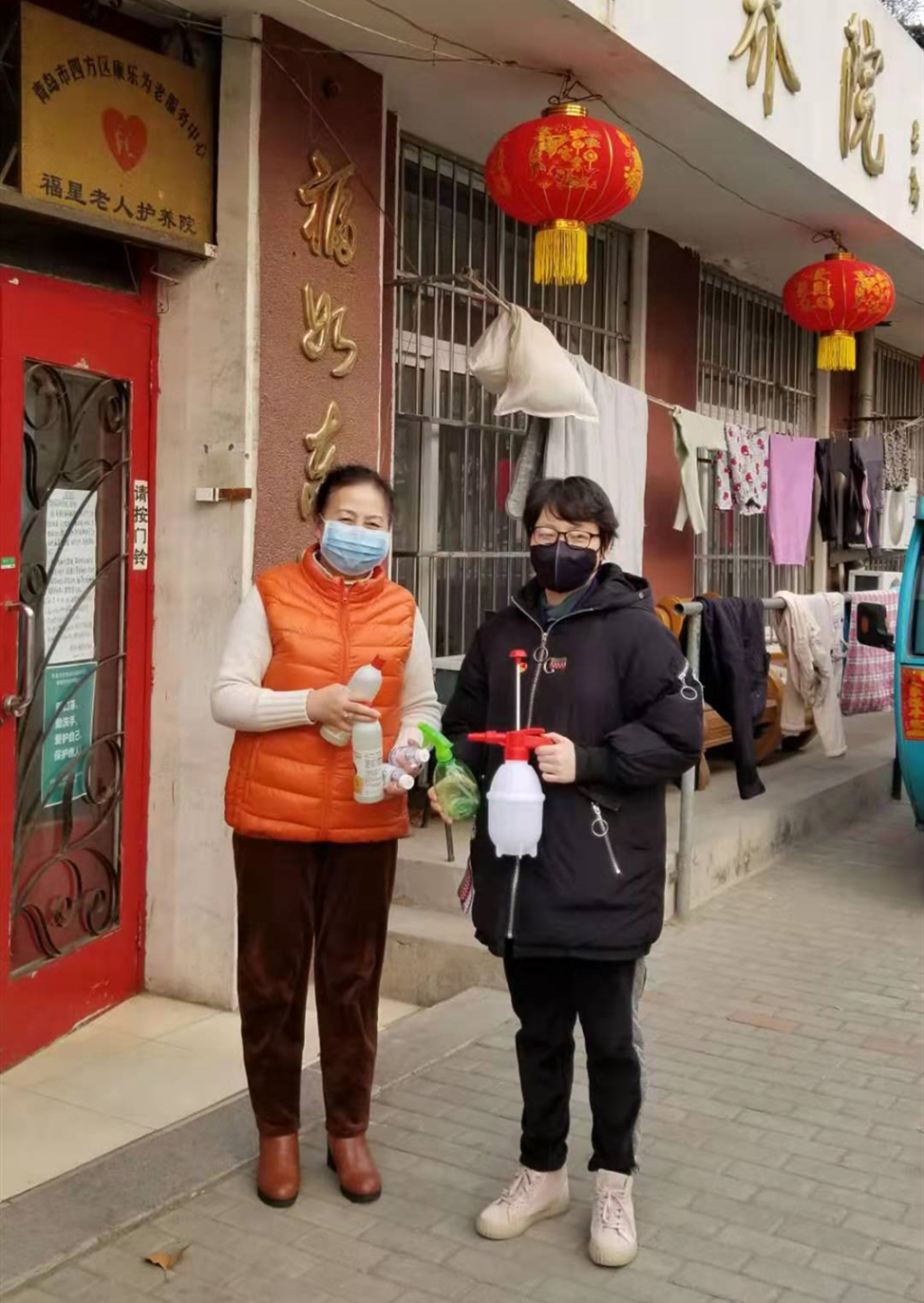 她所在的营业站附近有一所福星养老院,平时徐越没事儿就带上巾帼队员们登门看望老人们,帮他们打扫卫生,陪他们聊天解闷。疫情当前,徐越想到消毒防护物资紧缺,老人们的防护可能得不到保障,她就拿上自家的84消毒液和酒精,又去超市买了几个喷壶到养老院。由于特殊时期,不便与老人们接触,她便将这些用品送到了院长手里,并帮着进行基础消毒。