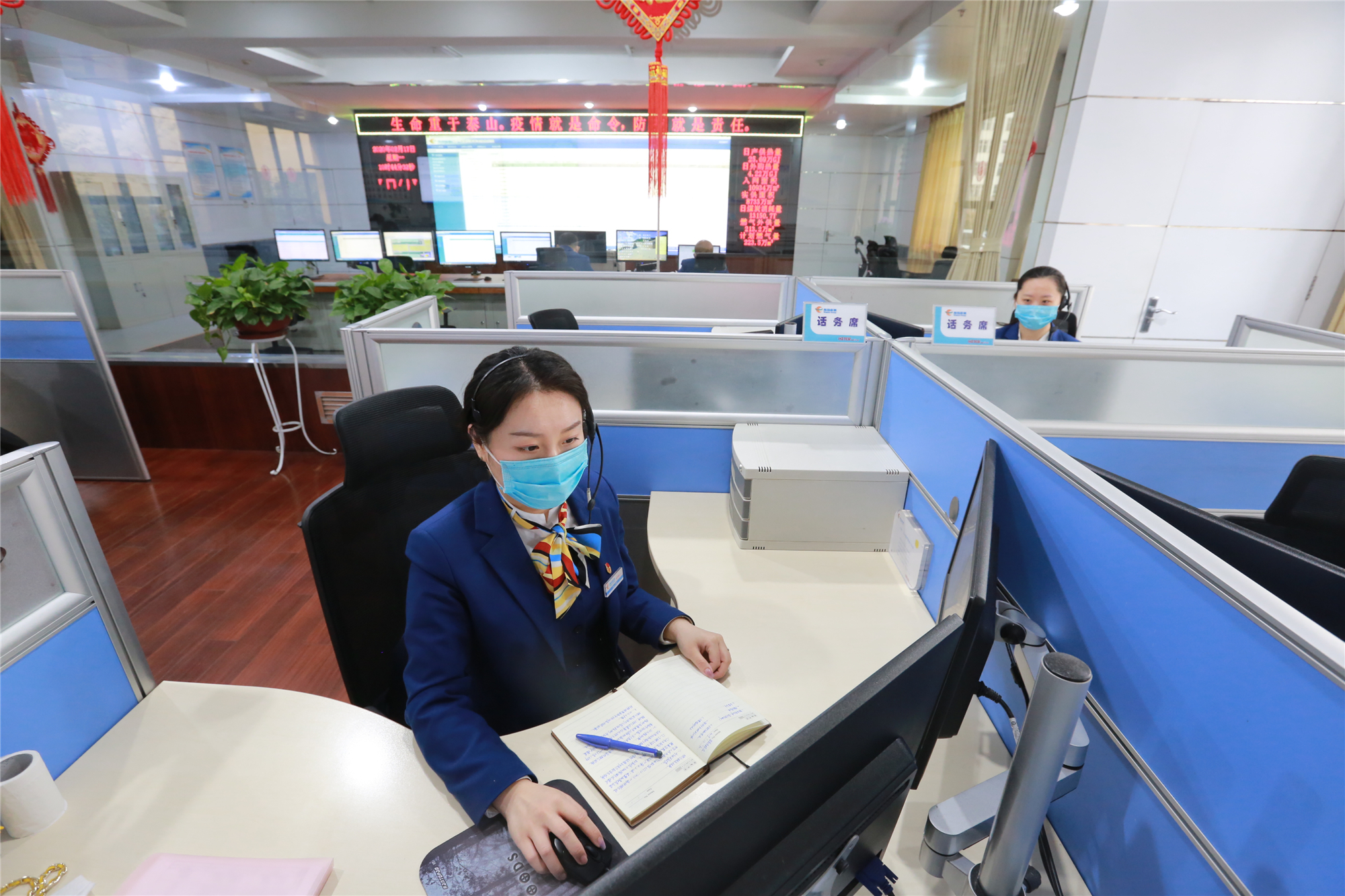 近期,热线电话量较以往虽然有所下降,但由于上班人员错峰,人均工作量并没有下降。由于佩戴口罩工作,为保证通话质量,话务员的声音要比平时提高一个声调;为了尽可能减少一线人员入户,话务员要反复指导来电用户自助排障或在线办理业务,通话时长要比平时长很多。时间一长,话务员的脸颊上就会感觉发闷发潮,嗓子也更容易干哑,于是就在接线间隙拉下口罩擦擦脸颊,顺便喝口水,又重新戴上口罩准备接听下一件用户来电。员工们还认真跟踪疫情发展,了解病毒传播途径和有效预防措施,积极通过网络、微信朋友圈普集权威防疫知识和发展情况,提醒同事们采取正确的防疫措施来有效抵抗疫情,跟进疫情动态,引导同事们理性应对疫情。