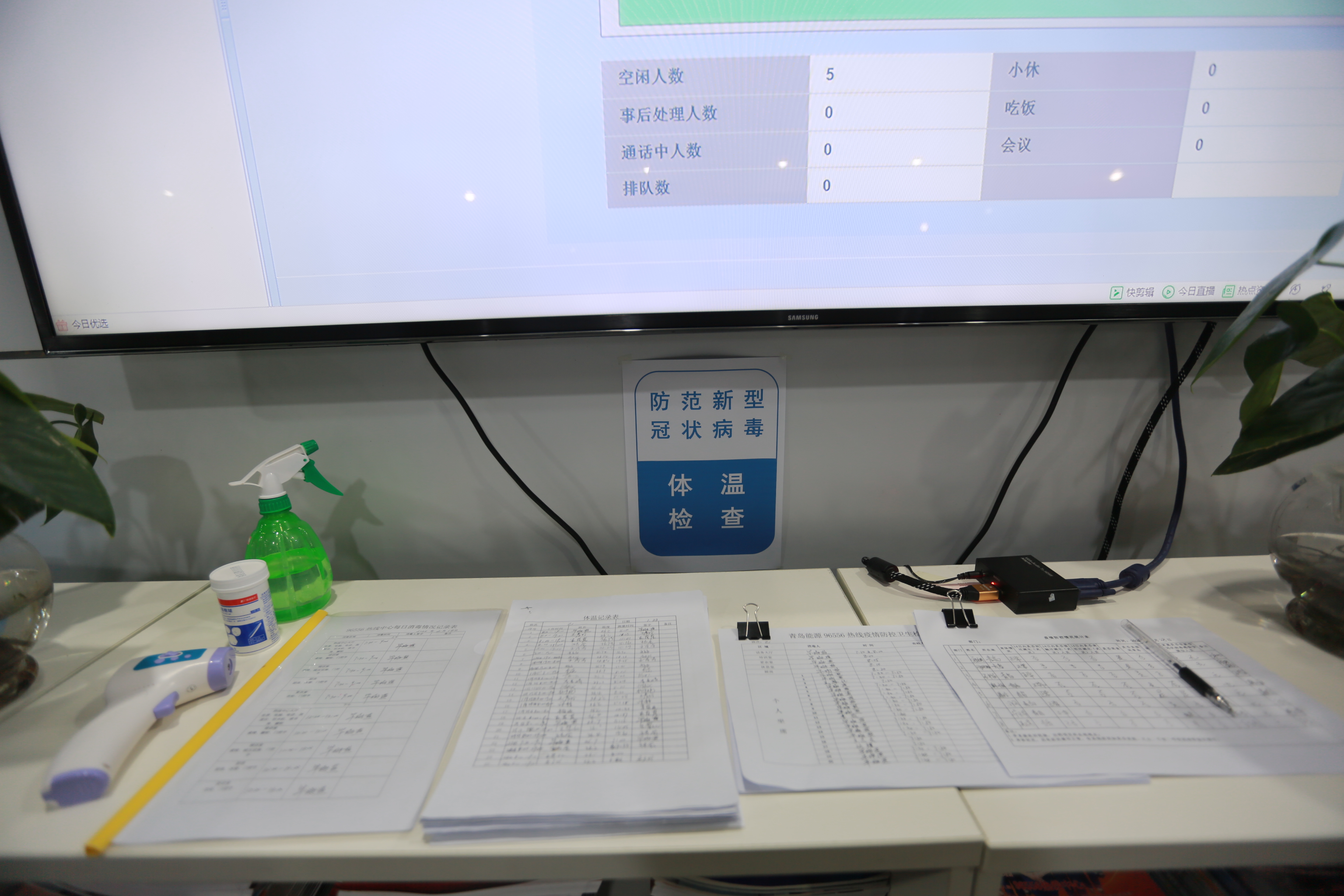 根据疫情防控形势,96556热线中心第一时间在微信工作群中传达省、市以及集团指示精神及文件通知,普及抗击疫情知识和防控措施,并要求每位员工做好办公场所、家庭和个人防护工作;集团公司为及时配备了口罩、酒精、洗手液、84消毒液、体温计等防护物品,以及速冻水饺、方便面等速食,既为员工解决了就餐问题,又尽可能避免员工与外界接触,做好防疫措施;在岗员工上岗后首先为96556热线中心受话大厅、培训室、解压室、更衣室、厨房及坐席等区域进行全面消毒、通风,工作期间分散坐席,佩戴口罩办公,每天做好两次体温测量并进行体温登记,不在岗员工也每天按时在微信工作群中将量体温情况“接龙”,便于及时了解掌握员工身体状况。96556热线中心还结合工作实际编制了“防疫情,众参与;上岗前,测体温;戴口罩,讲卫生;勤洗手,常通风;大厅内,分散座;日报告,快接龙;快接听,速受理;优服务,线上行;日信息,网上享;有症状,早就医;不恐慌,不传谣;共同战疫,胜利在即”的疫情防控顺口溜,使疫情防控措施深入人心。