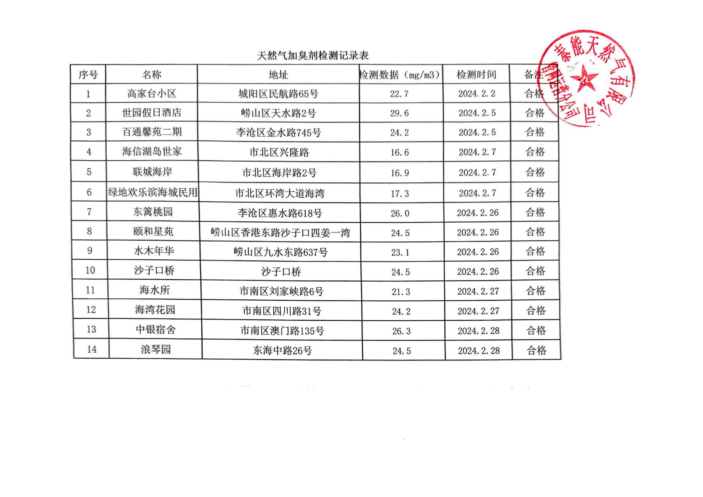 上一篇:天然气加臭剂检测记录表(2024年1月)