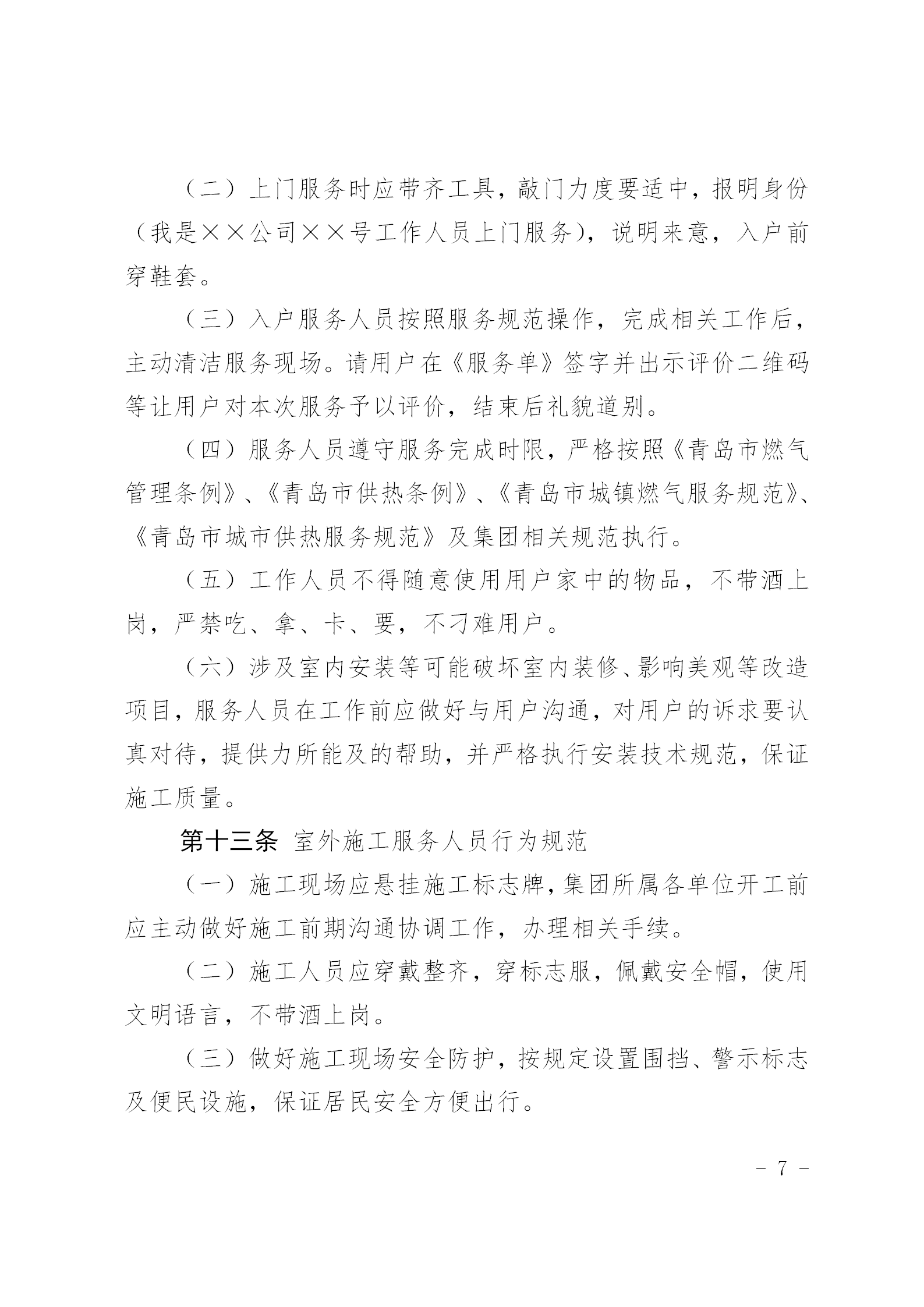 服务规章制度